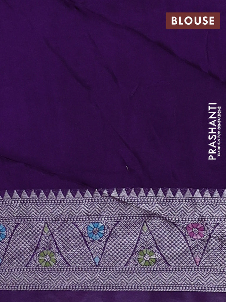 Banarasi semi raw silk saree violet with allover silver woven brocade weaves and floral design paithani border