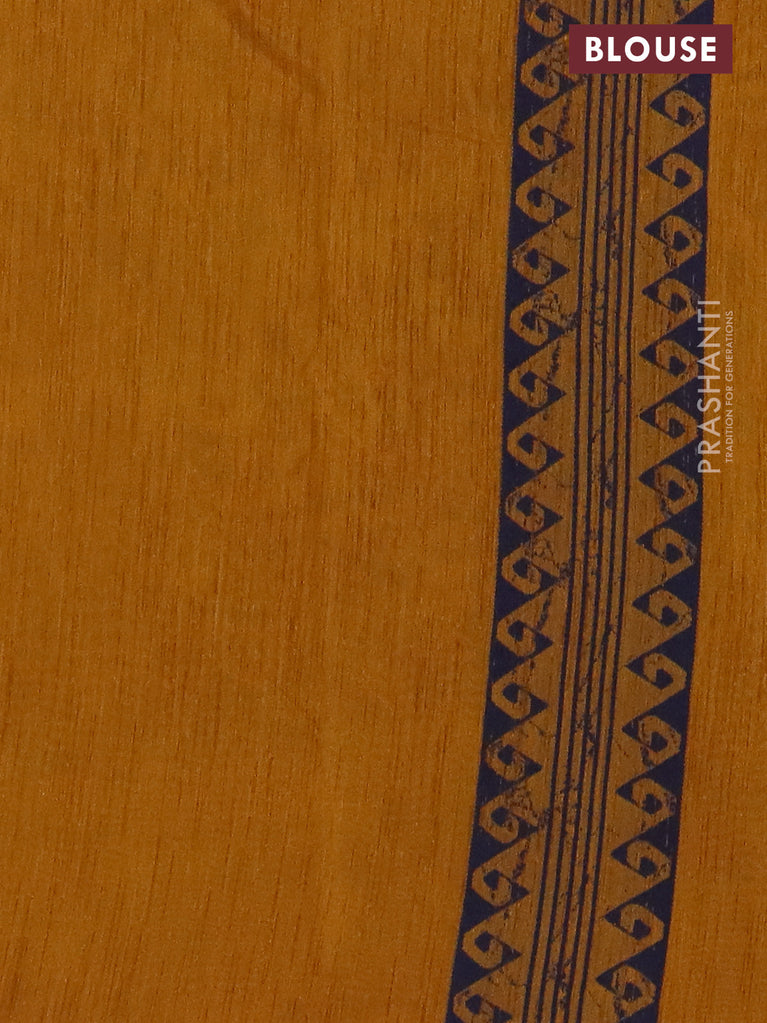 Banarasi semi matka saree mustard yellow and navy blue with allover thread weaves and thread woven border