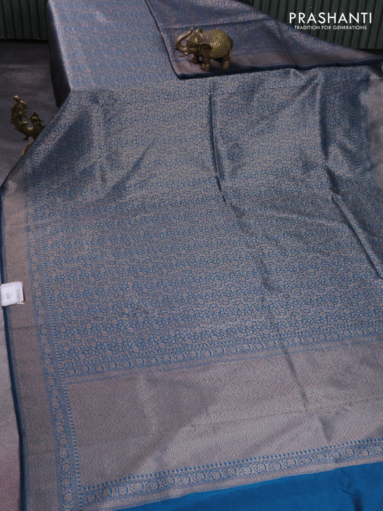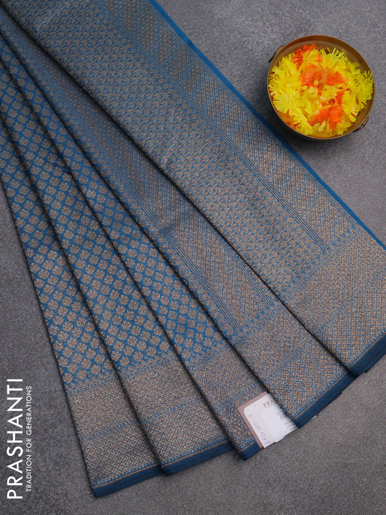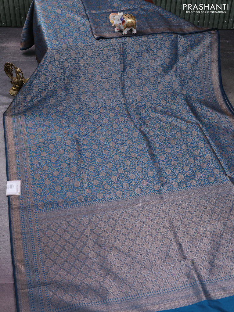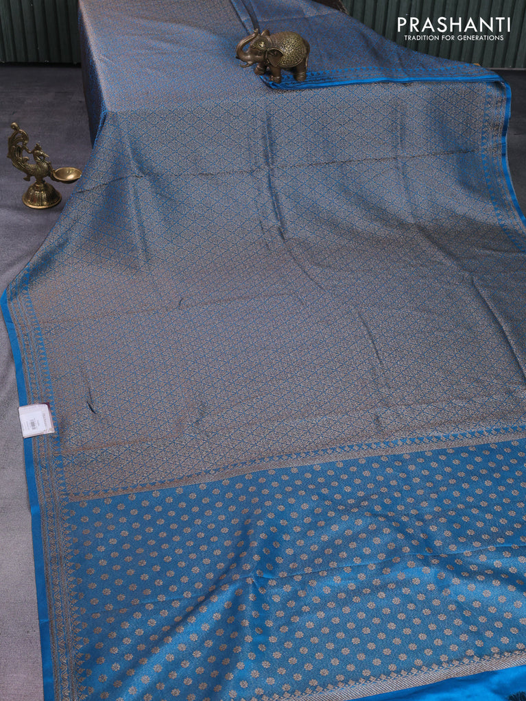 Banarasi semi silk saree cs blue with allover thread & zari weaves and woven border