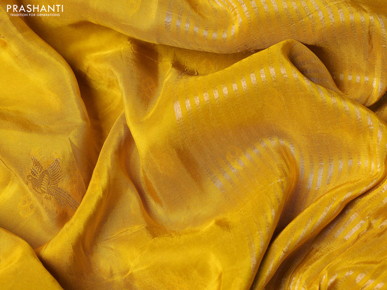 Banarasi silk saree yellow and violet with annam zari woven buttas and zari woven border