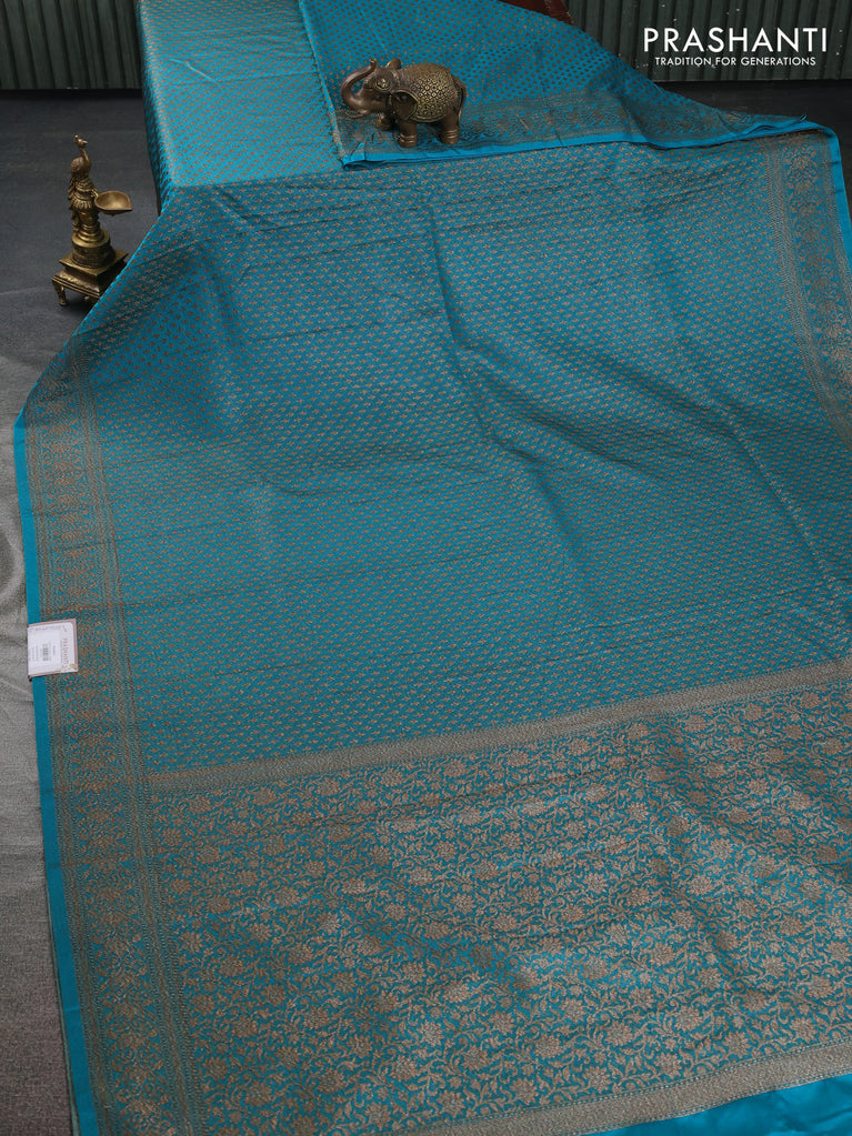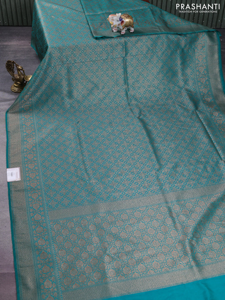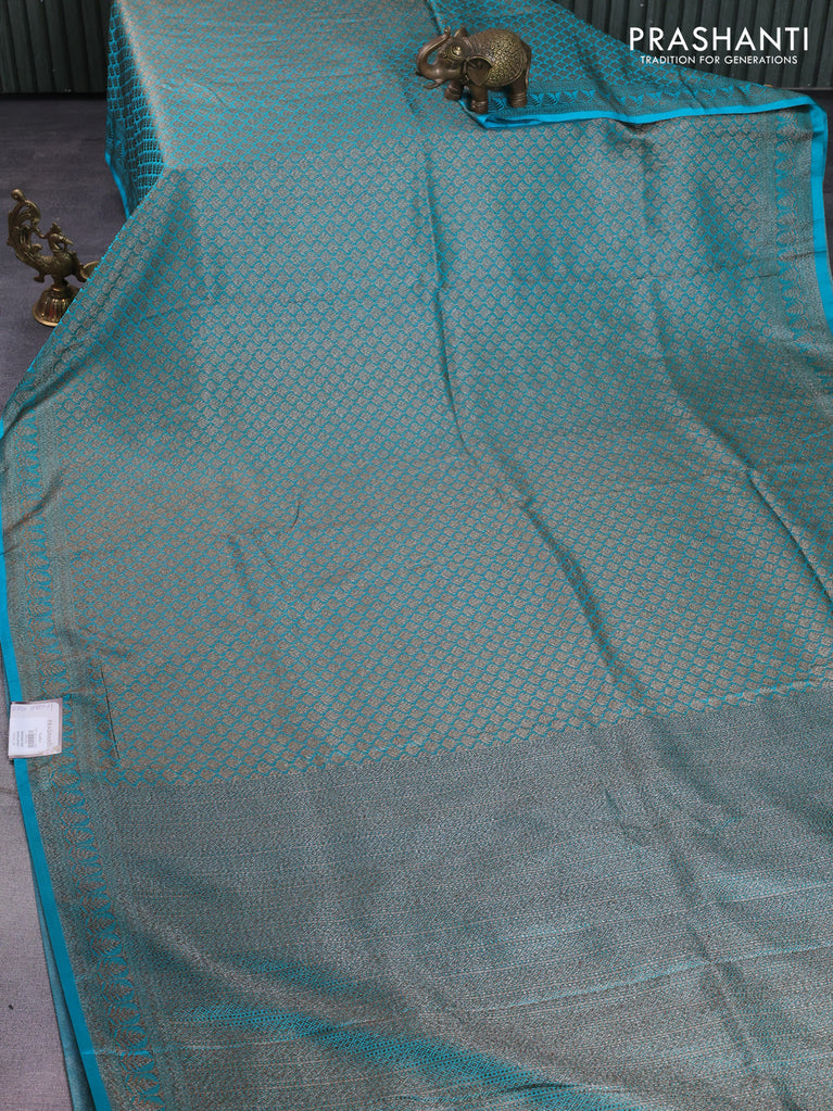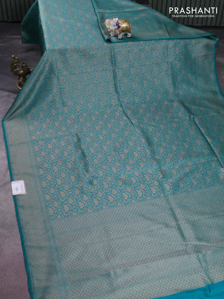 Banarasi semi silk saree teal blue with allover thread & zari weaves and woven border