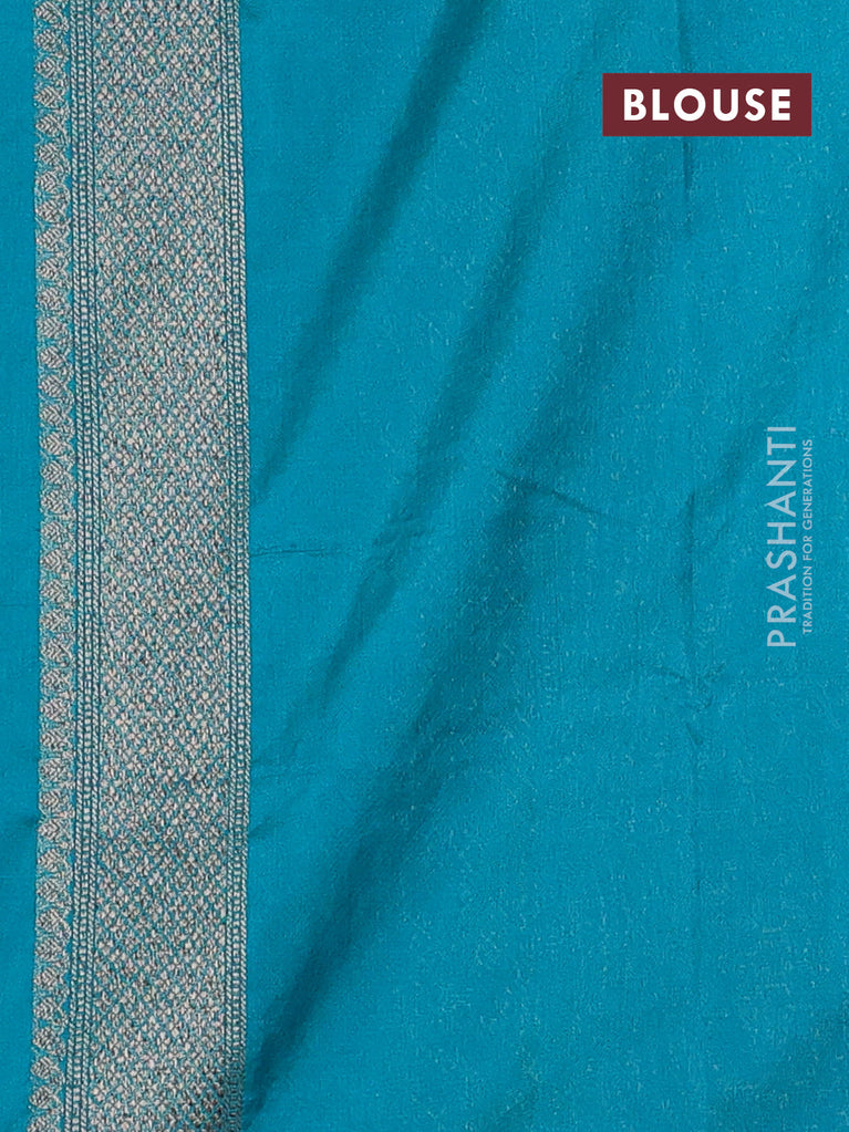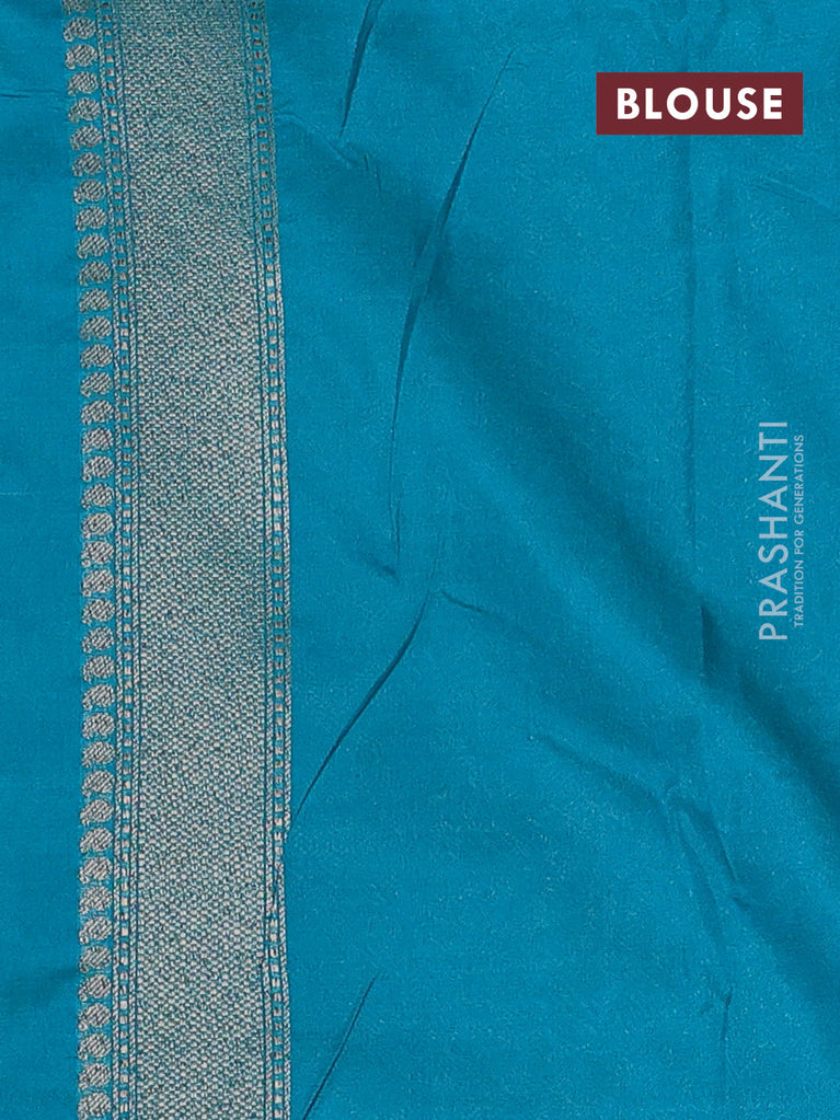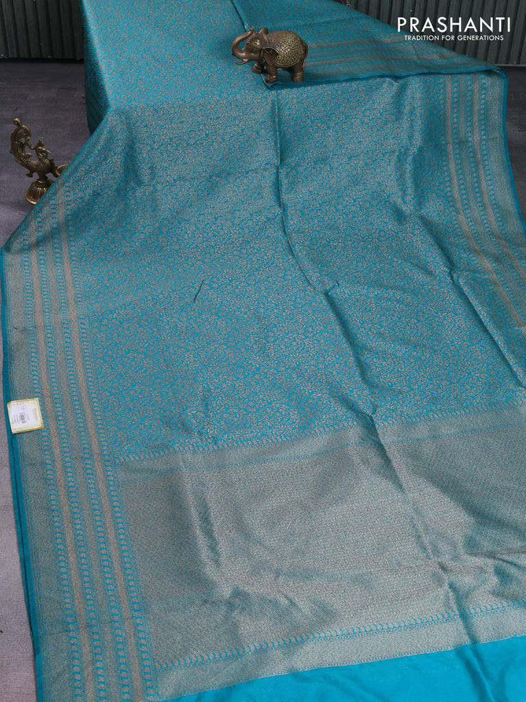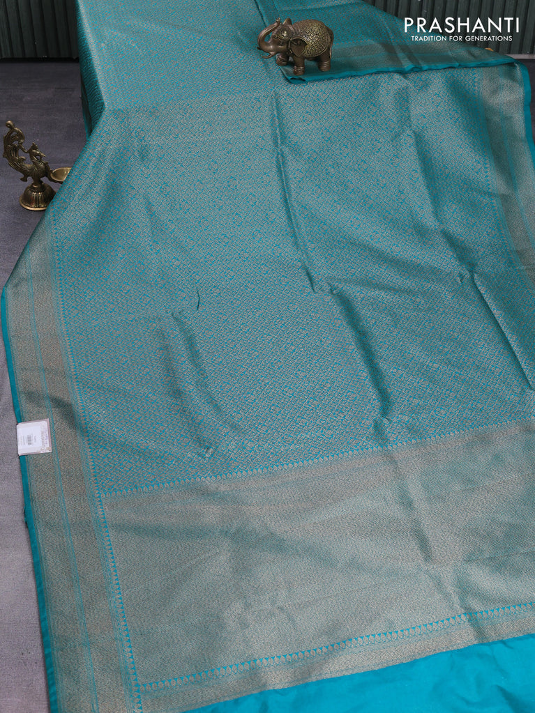 Banarasi semi silk saree teal blue with allover thread & zari weaves and woven border