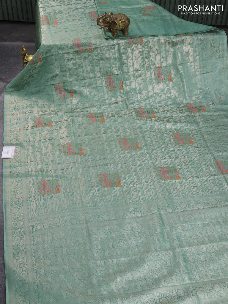 Banarasi silk saree elaichi green with position butta prints and position prints