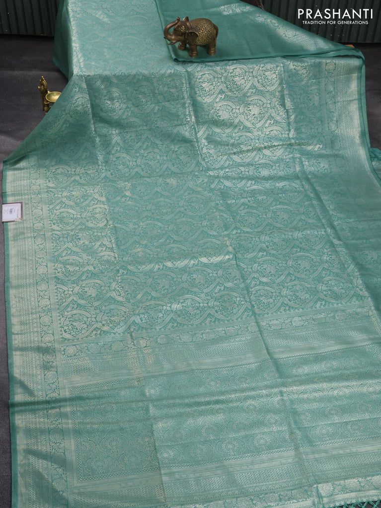 Banarasi silk saree pastel green with allover silver zari woven brocade weaves and silver zari woven border