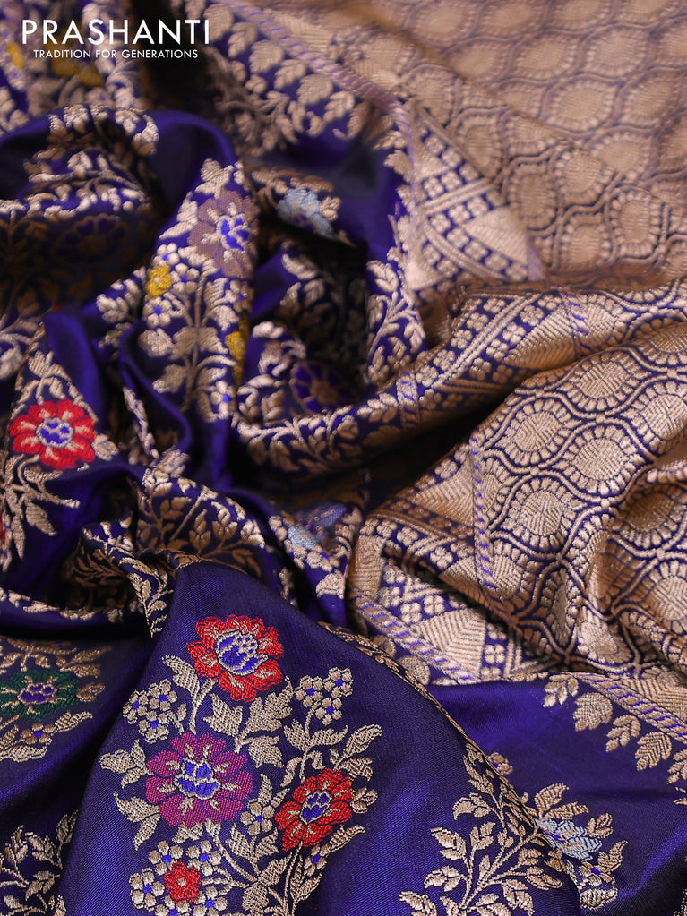 Banarasi uppada silk saree royal blue with allover thread & zari woven floral weaves and floral zari woven border