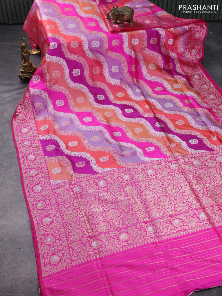 Banarasi uppada silk saree multi colour with allover silver & gold zari weaves and zari woven border
