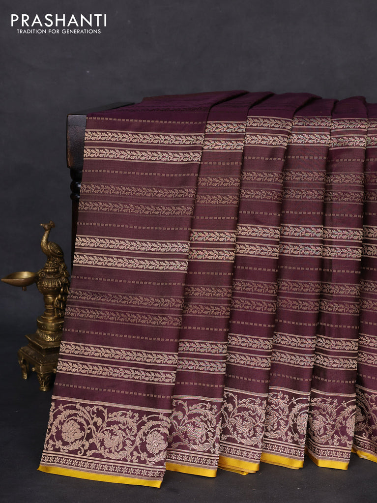Banarasi uppada silk saree wine shade and yellow with allover thread & zari weaves and zari woven border