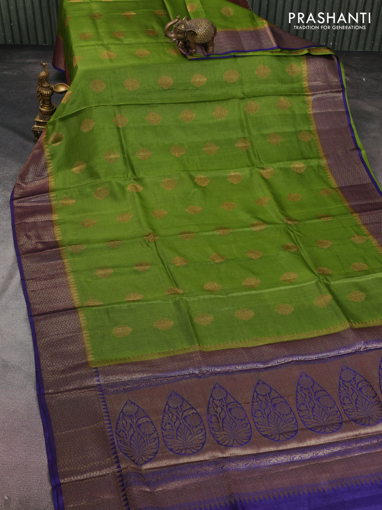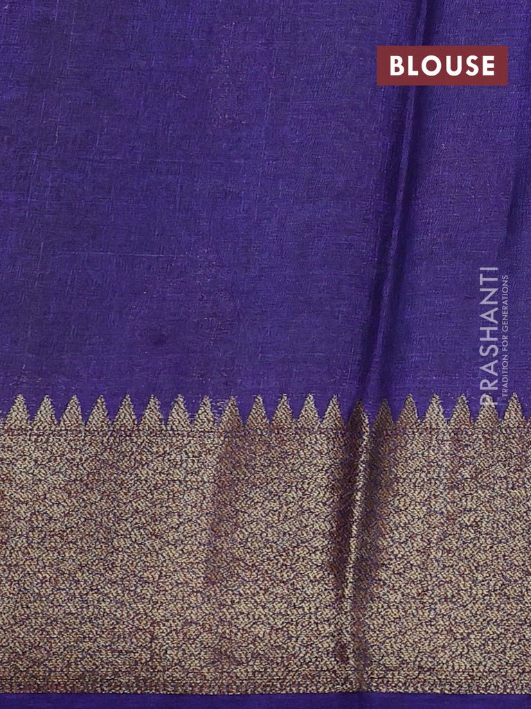 Banarasi tussar silk saree mehendi green and purple with thread & zari woven floral buttas and woven border