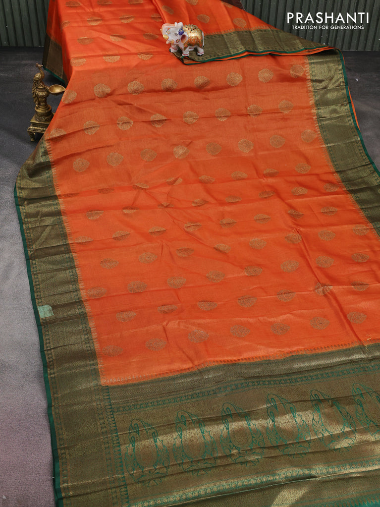 Banarasi tussar silk saree orange and green with thread & zari woven buttas and woven border