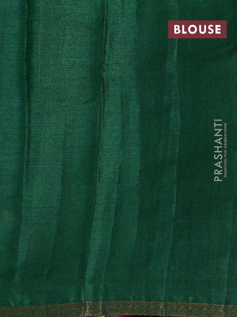 Banarasi tussar silk saree red and green with thread & zari woven floral buttas and woven border