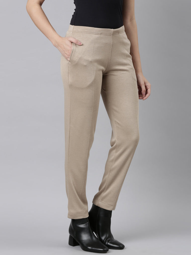 Freezing in your place? Don't fret, our Solid Beige Ultra Warm Kurti Pant are perfcet to keep you warm & cozy. Made from Tencel, it has a elasticised waistband, slant pockets & a tapered fit.