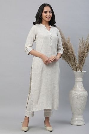 Beige Kurta & Trousers Co-ord Set