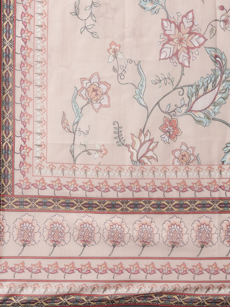 Beige Slub rayon printed three piece set