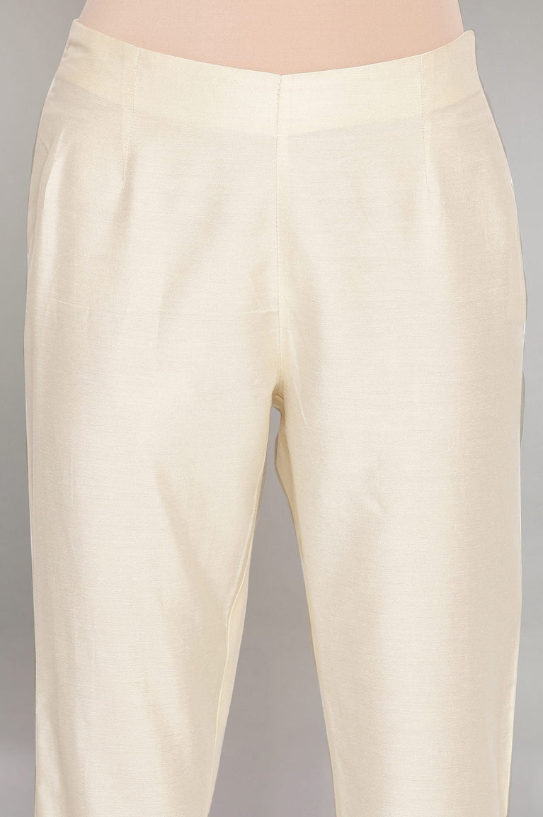 Elevate Your Casual Look With This Pair Of Trimmed Trouser Pants. It Is Mid-Rise With Partially Elasticized Waistband, Lace Insert At Bottom Hem. Pair It Up With Our kurtas Or Short Top To Have A Smart Appeal.