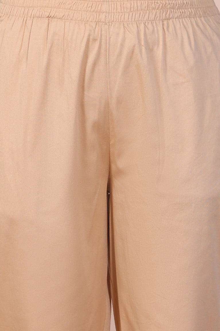 Designed for everyday elegance, this beige straight kurta and slim pant set is a reliable wardrobe essential. The earthy tone and streamlined cut make it suitable for office wear or casual outings. This beige ethnic pant set is tailored to provide comfort without compromising style. Pair it with colourful scarves or statement earrings for variety. Simple, versatile, and graceful, the beige ethnic pant set belongs in every modern ethnic wardrobe.