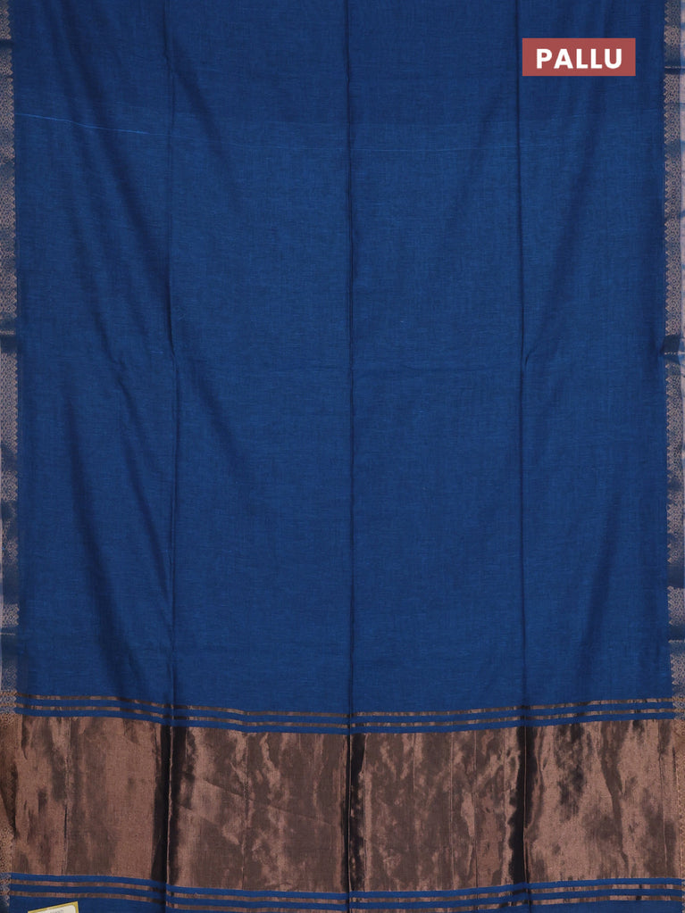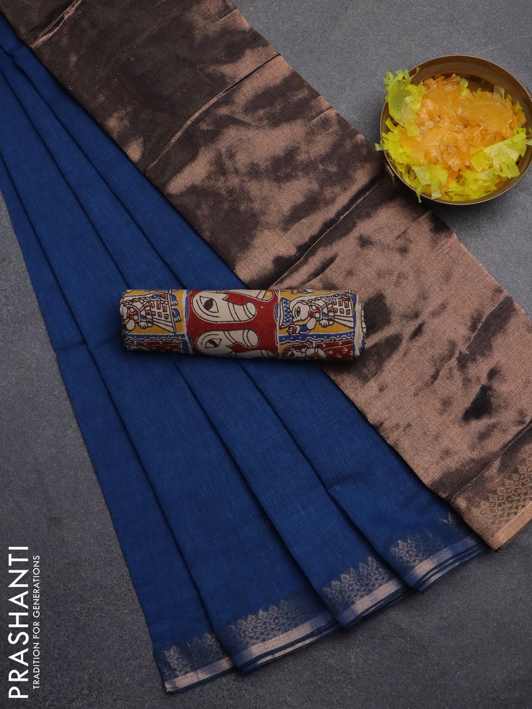 Bengal soft cotton saree cs blue and blue with plain body and zari woven border