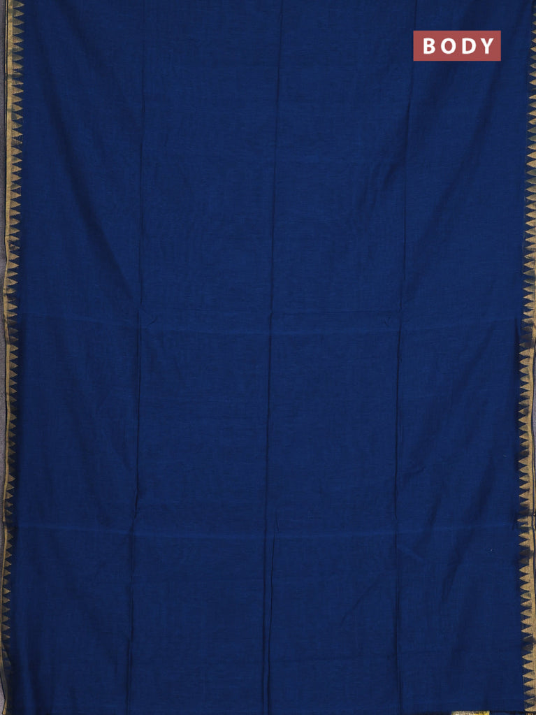 Bengal soft cotton saree blue and dark mustard with plain body and zari woven border
