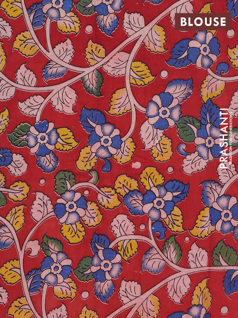 Bengal soft cotton saree blue and red with plain body and zari woven border