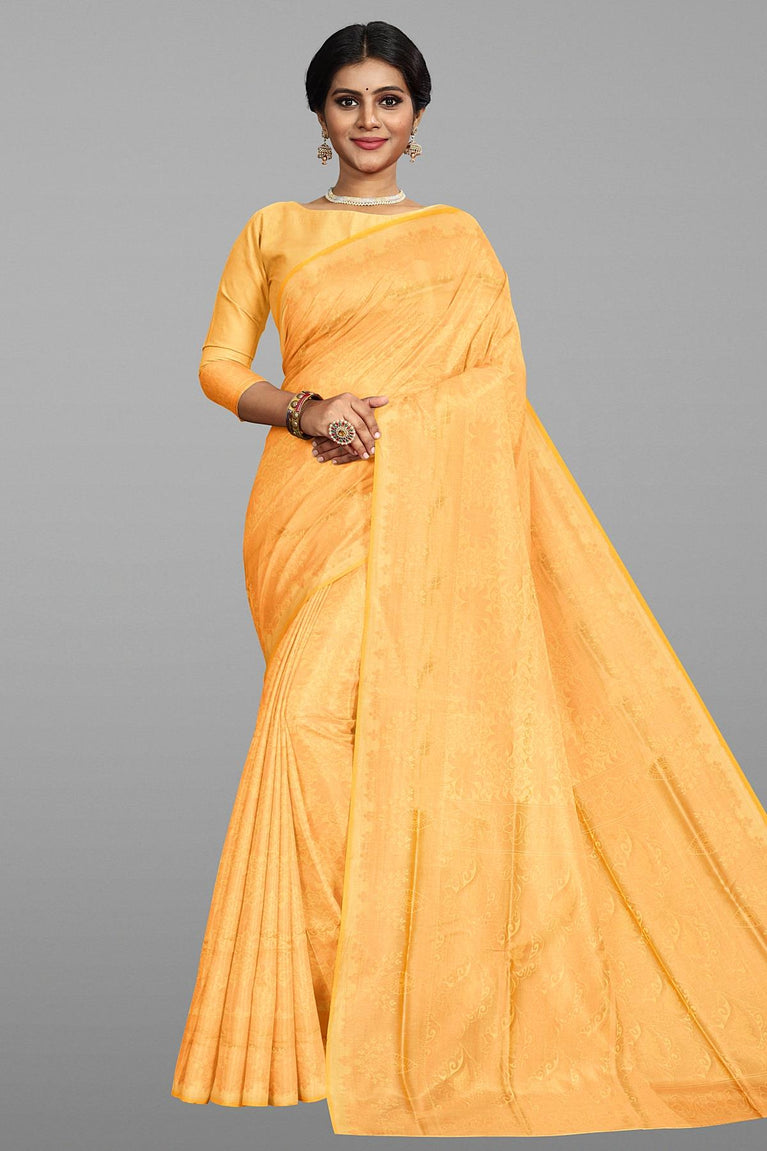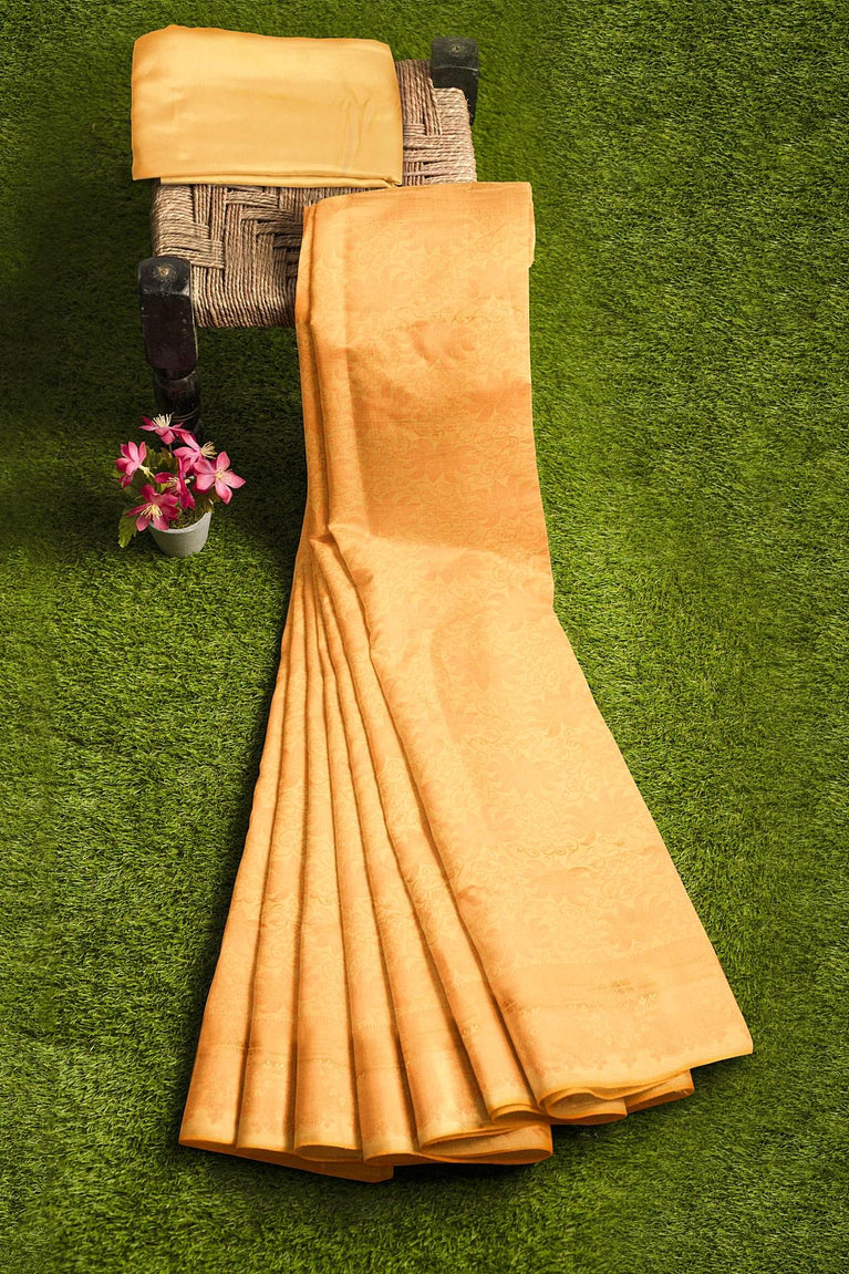 BIEGE and GOLD BUTTIS SILK BLEND Saree with SEMI PATTU