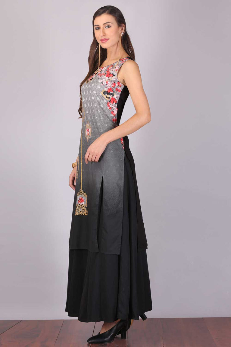 Black & Grey Printed Round Neck kurta Set