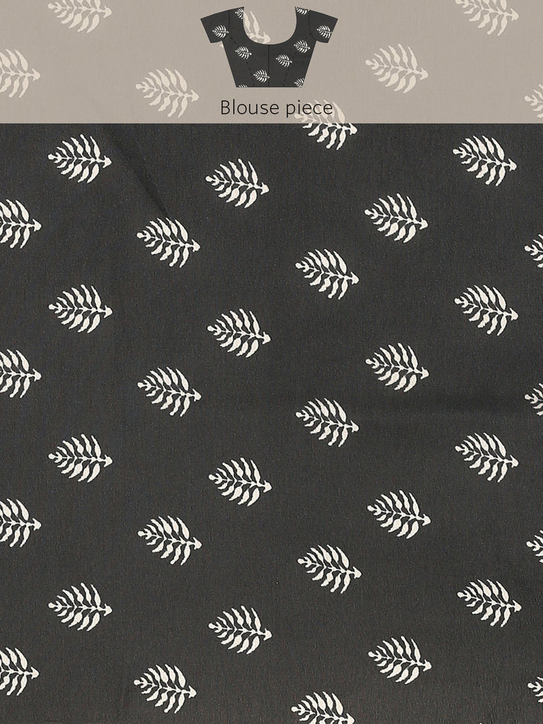 Bishnupuri silk saree pastel greyish blue and black with butta prints and printed border