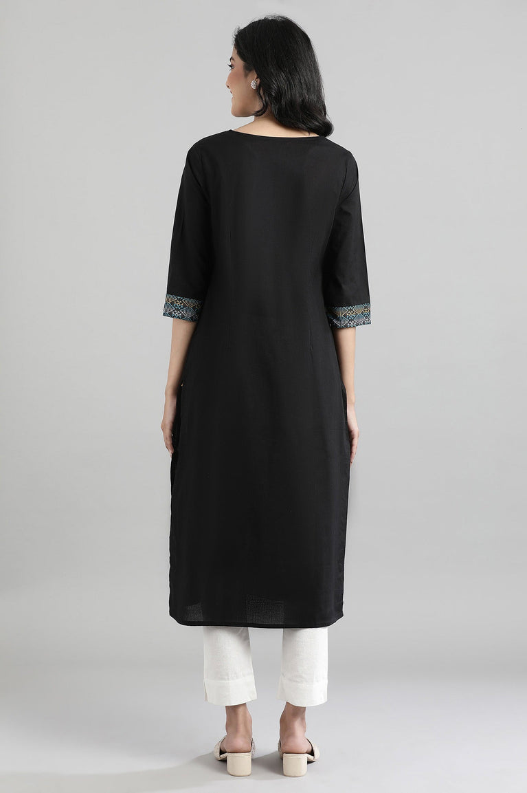 Elegant And Equally Stylish, This Black Dobby Patch Kurta Is A Perfect Pick For Your Dinner With Family. It Is Designed In Straight Silhouette And Has Metallic Embroidery.