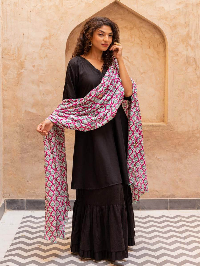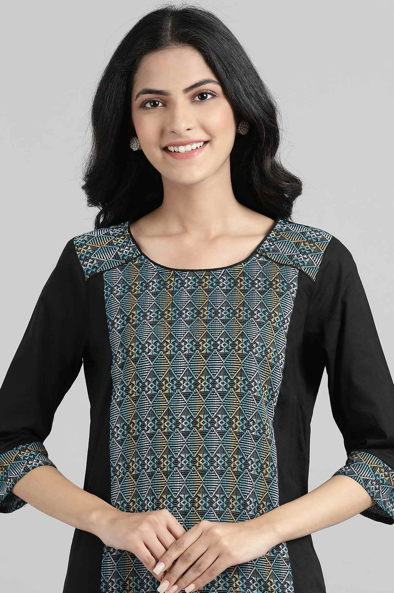 This absolutely beautiful black cotton blouse is so lovely that it effortlessly steals your heart and makes it a breeze to wear.