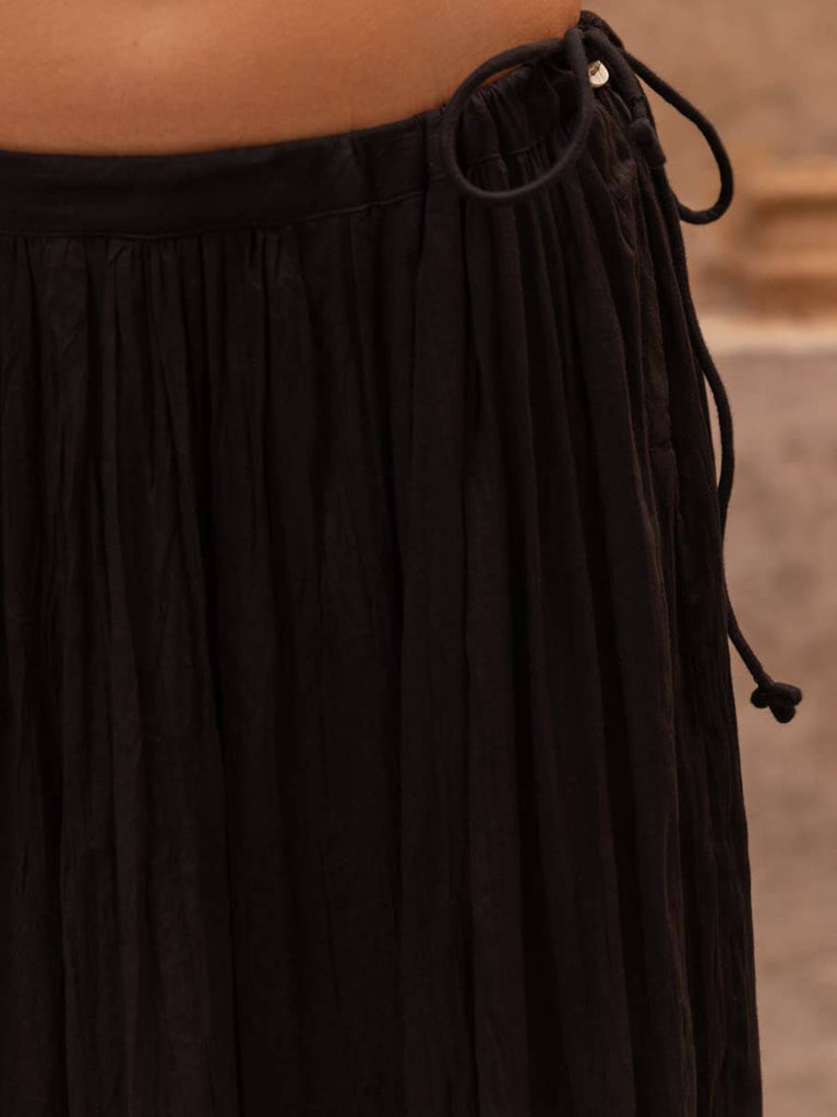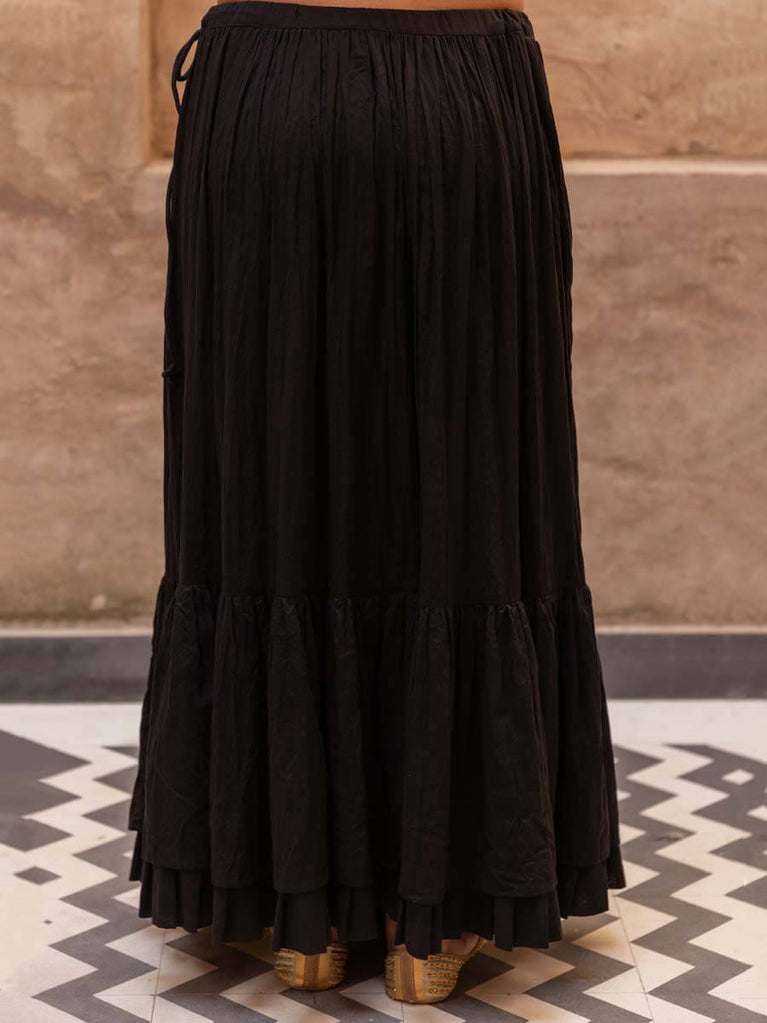 Elevate Your Look With kurta Or Top By Pairing The Top-Wear With This Stylish Black Overlapping Dhoti Pants. The Pants Has Golden Metal Handing Trim.