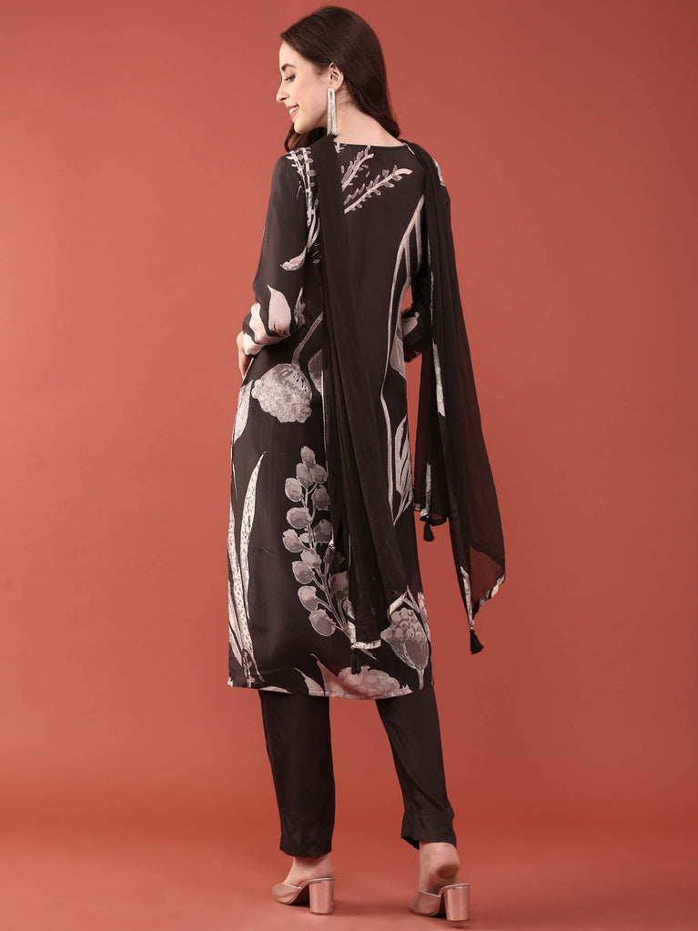 Black Dola Silk Digital Print Three Piece Set