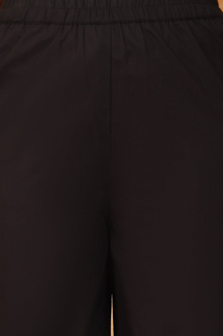 Timeless elegance meets modern craftsmanship in this black embroidered kurta set for women. The straight silhouette kurta features intricate embroidery on the neckline, hemline, and three-quarter sleeves, creating a refined ethnic look. Paired with relaxed-fit pants adorned with matching embroidery, this set is perfect for festive gatherings or traditional celebrations. The breathable fabric ensures comfort, while the embroidered accents add a touch of sophistication. Complete with side slits for ease of movement, this kurta set is a versatile addition to your wardrobe. Elevate your style effortlessly with this curated ensemble.