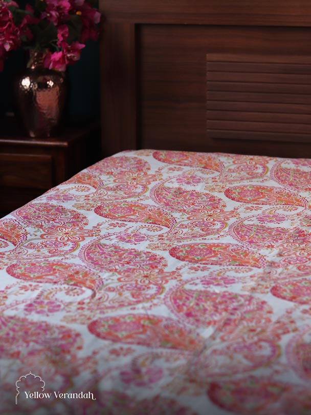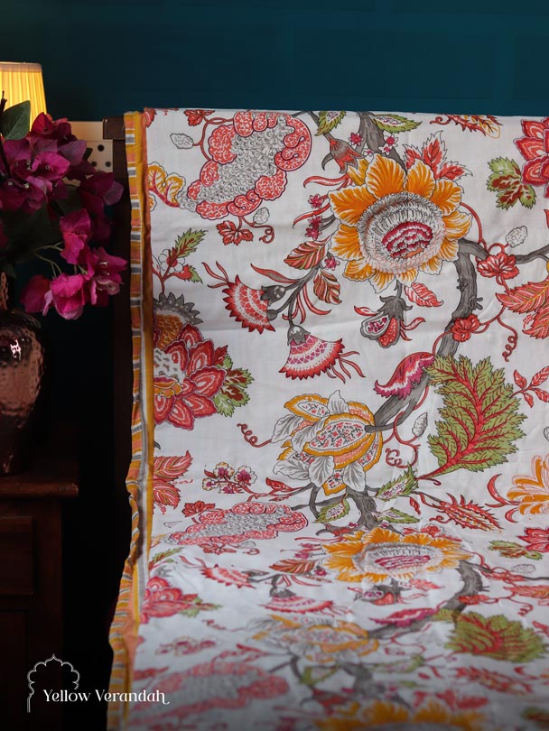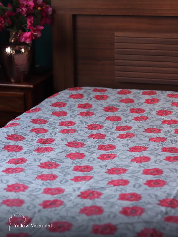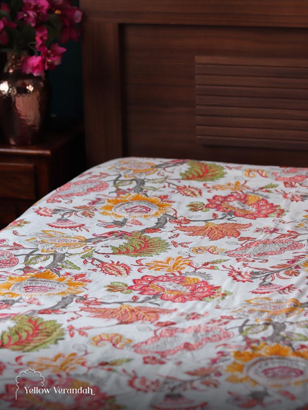 Block Printed Cotton Bedspread - Single