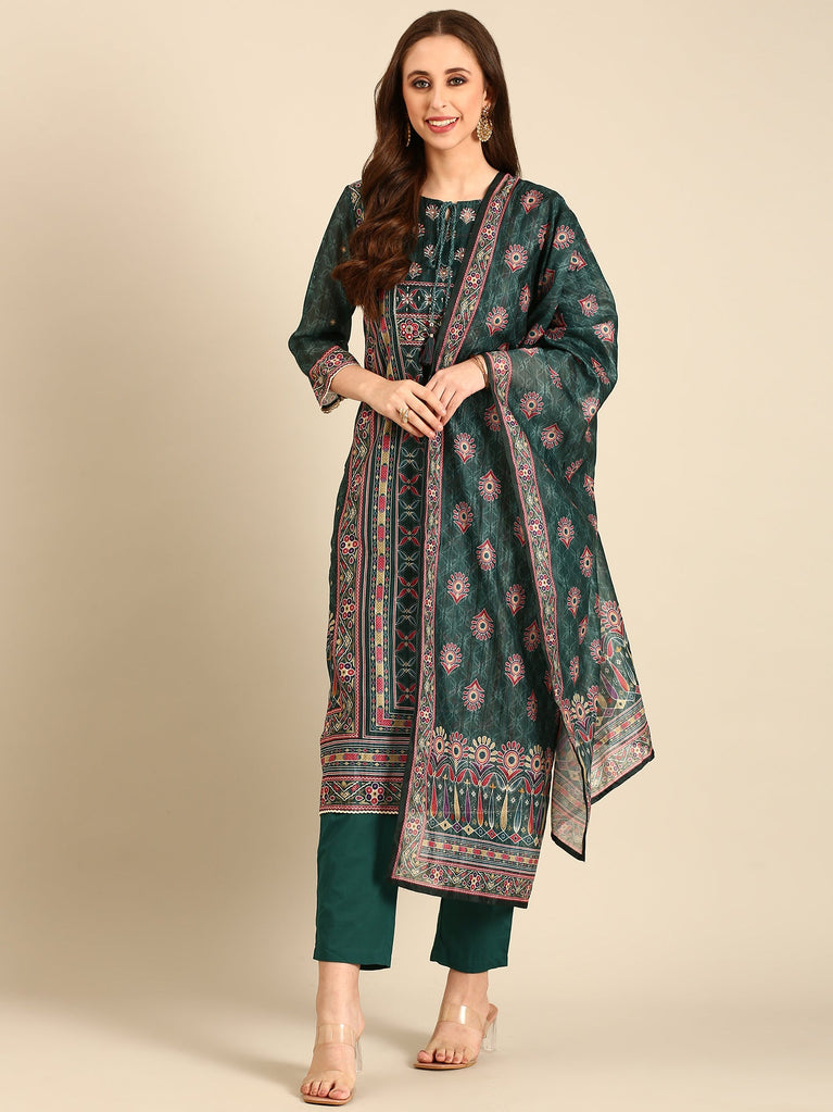 Bottle Green Suit set with Organza duppatta