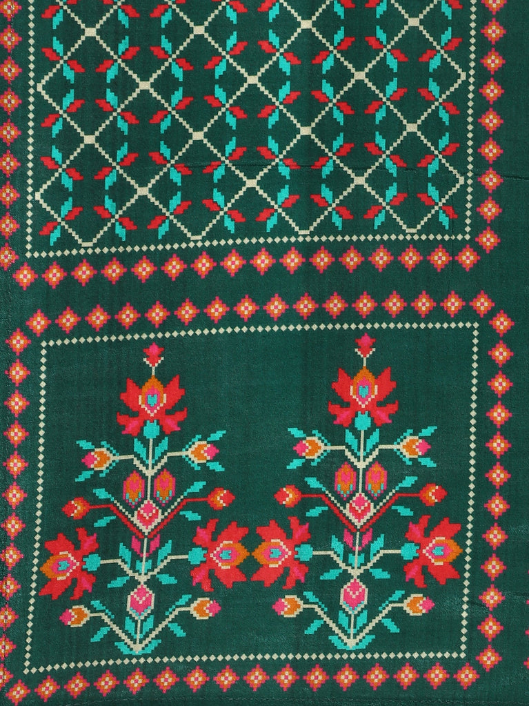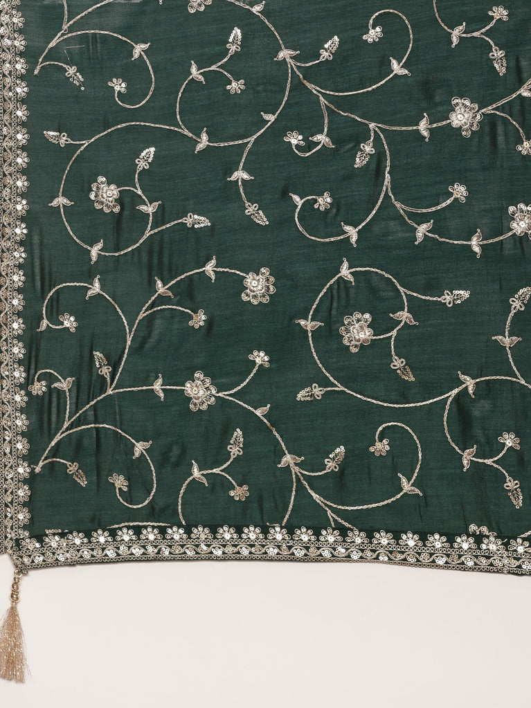 Bottle Green Vichitra Fabric Shoulder Kali With Embroiderey Duppata