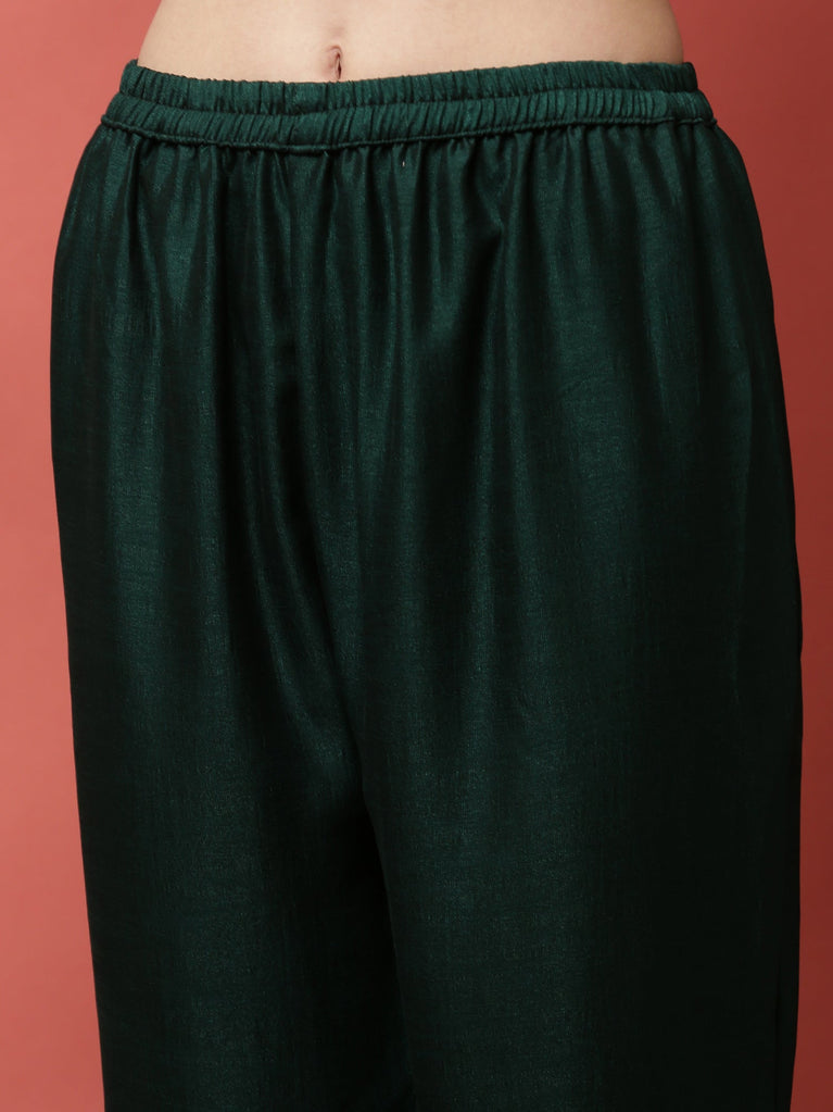 Bottle Green Woven Viscose Basic Palazzo