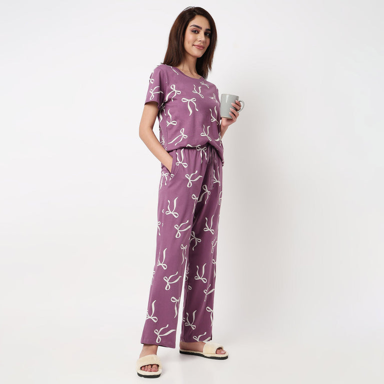Bow Print Cotton Lounge Pyjamas