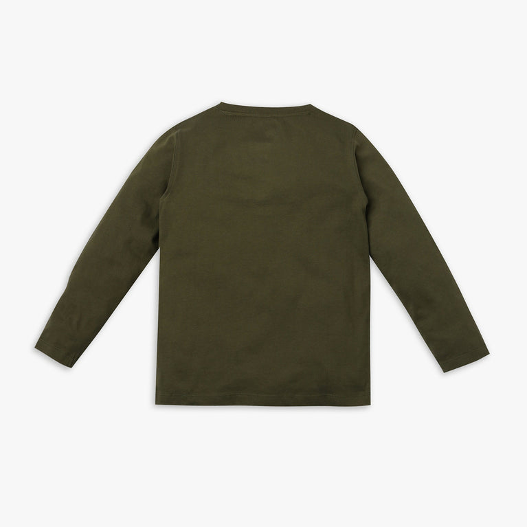This t-shirt has a crew neck and full sleeve. Made from cotton, your kid's feel comfortable wearing a product.
