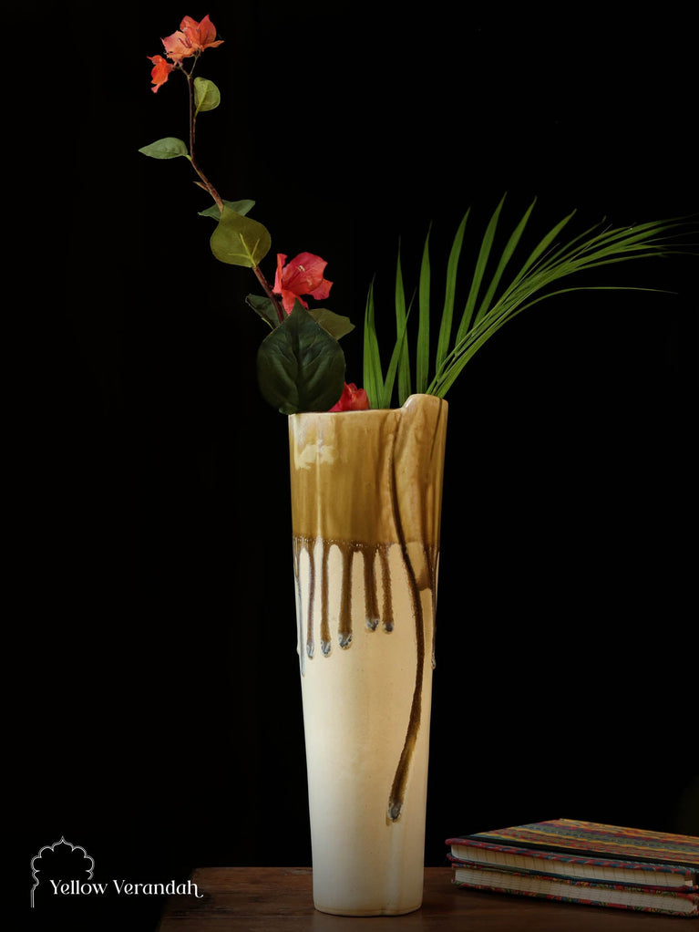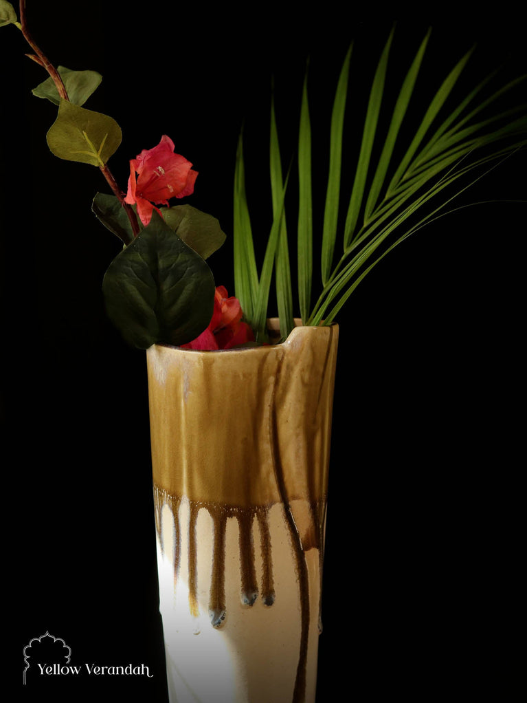 This Ceramic Flower Vase brings a hint of natural beauty to any home. Its mini design is perfect for setting up a corner console or table escape, while the ceramic material ensures lasting quality and durability. Bring a touch of nature to your home with this beautiful flower vase. Size : H- 13.5", Dia - 4"Material : Ceramic