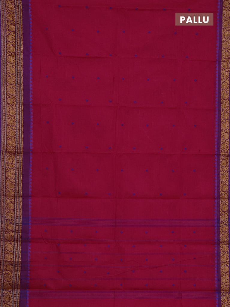 Chettinad cotton saree navy blue and dark magenta pink with thread woven buttas and zari woven border