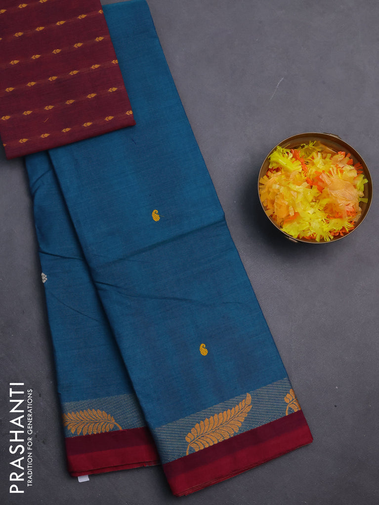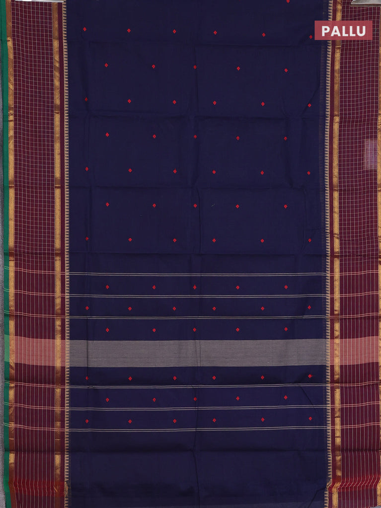 Chettinad cotton saree navy blue and maroon with thread woven buttas and zari woven border