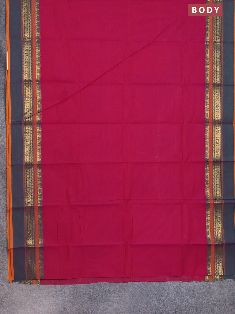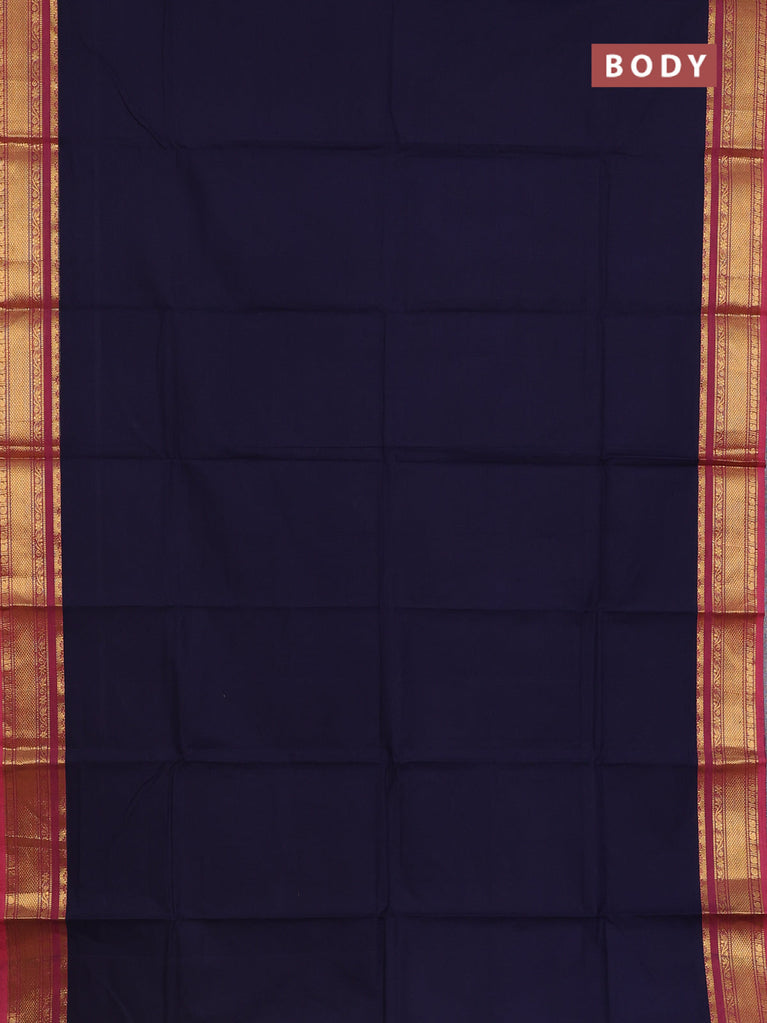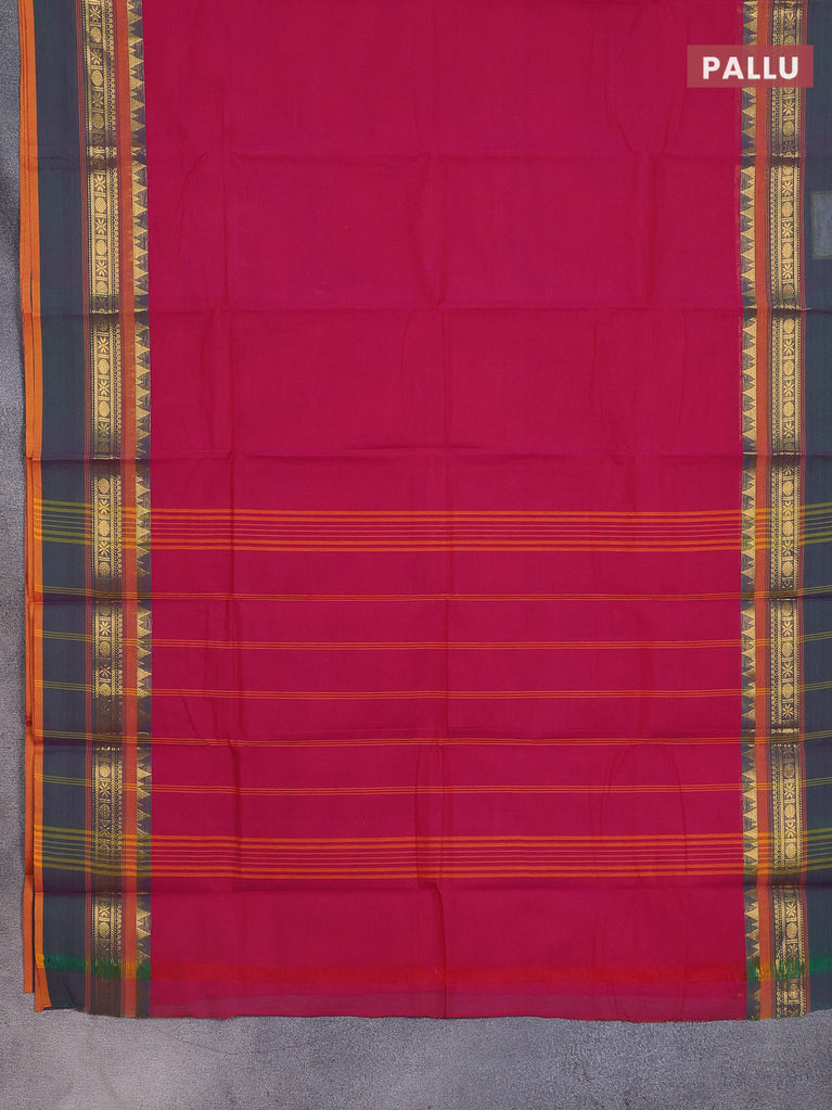 Chettinad cotton saree navy blue and magenta pink with thread woven buttas and rattapet zari woven border