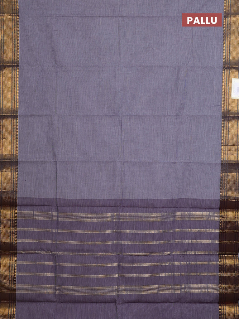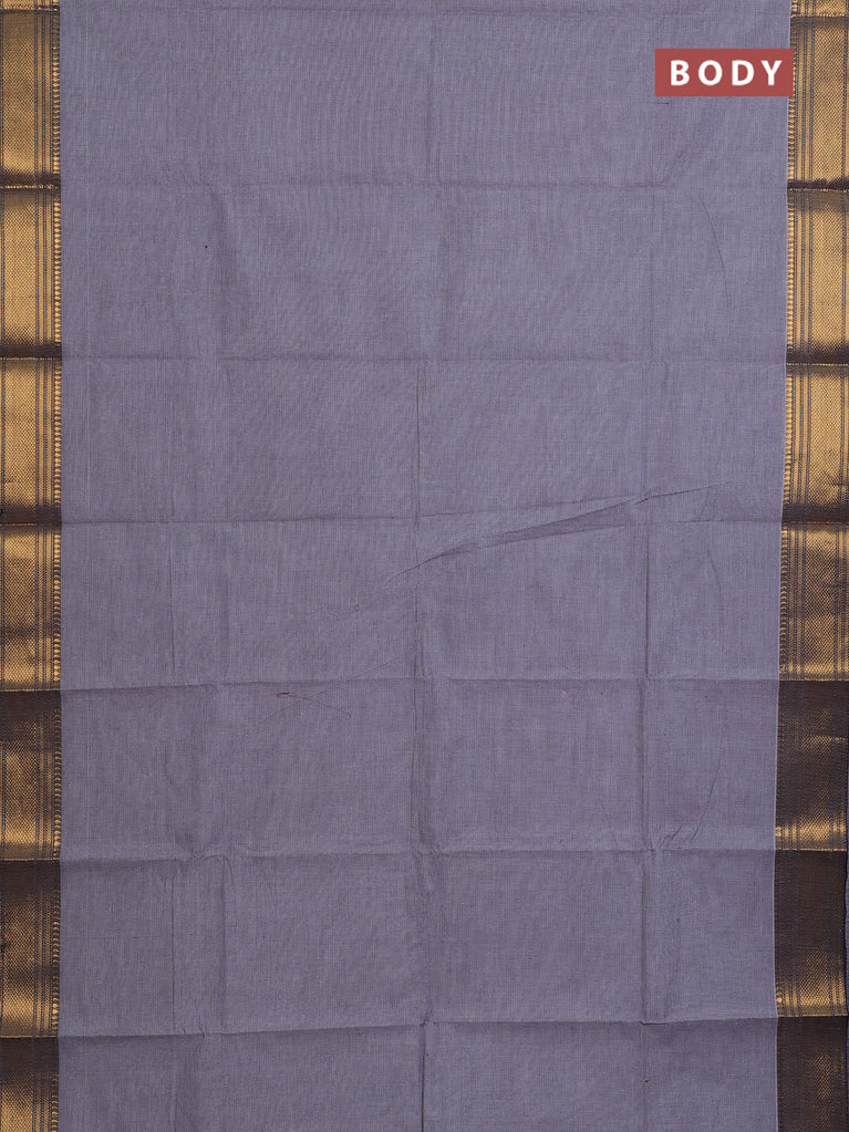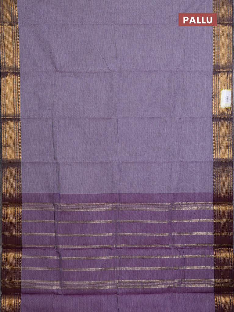Chettinad cotton saree off white and purple with allover small checked pattern and zari woven border