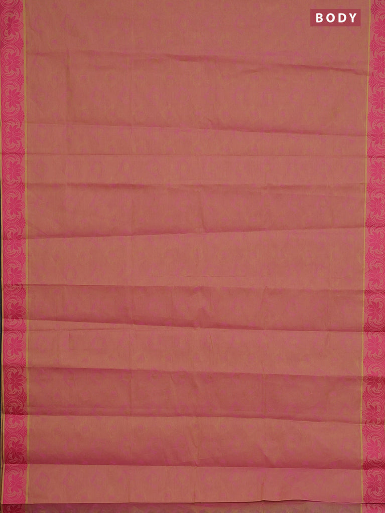 Coimbatore cotton saree dual shade of yellowish light pink with allover self emboss and thread woven border