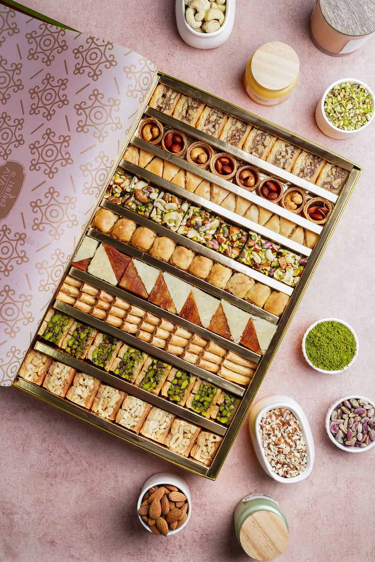 Our Assorted Baklava Box is a delectable assortment of Middle Eastern desserts, each offering a unique blend of nuts, honey, and flaky dessert.