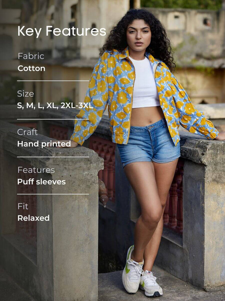 Euphoria Kantha Embroidered Block Printed Bomber Jacket