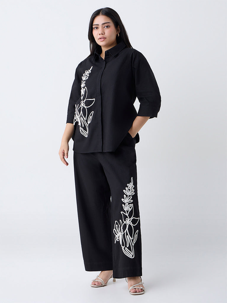 Gia Black Floral Embroidered Linen-Blend Shirt