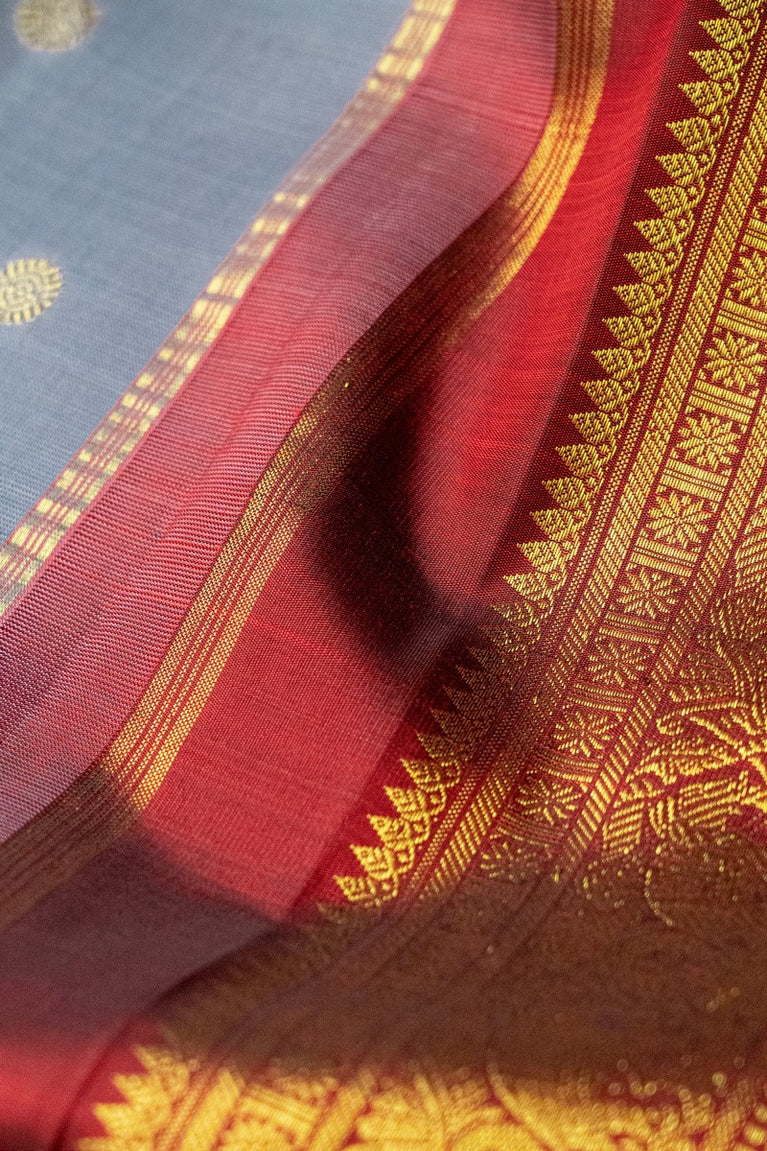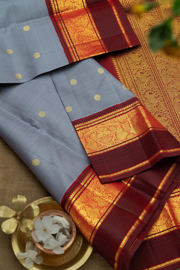 Kancheepuram Silk Rudraksha Buttis Light Grey Saree
