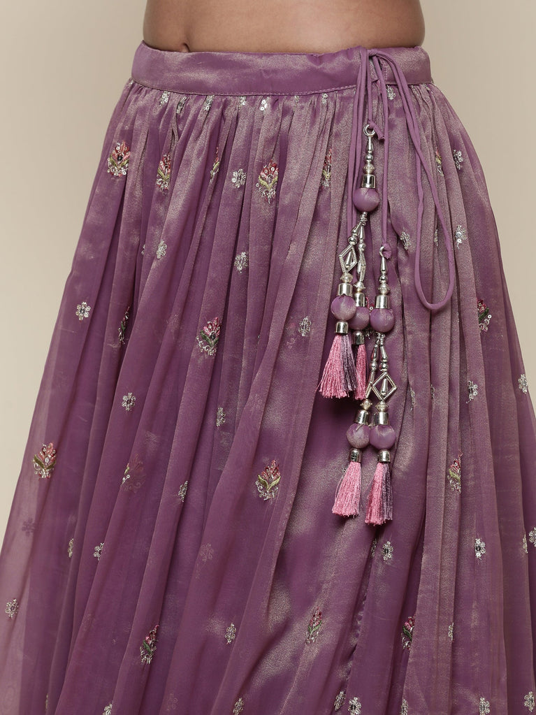 Lavender Net Heavy Floral Embroidered Ghagra Set