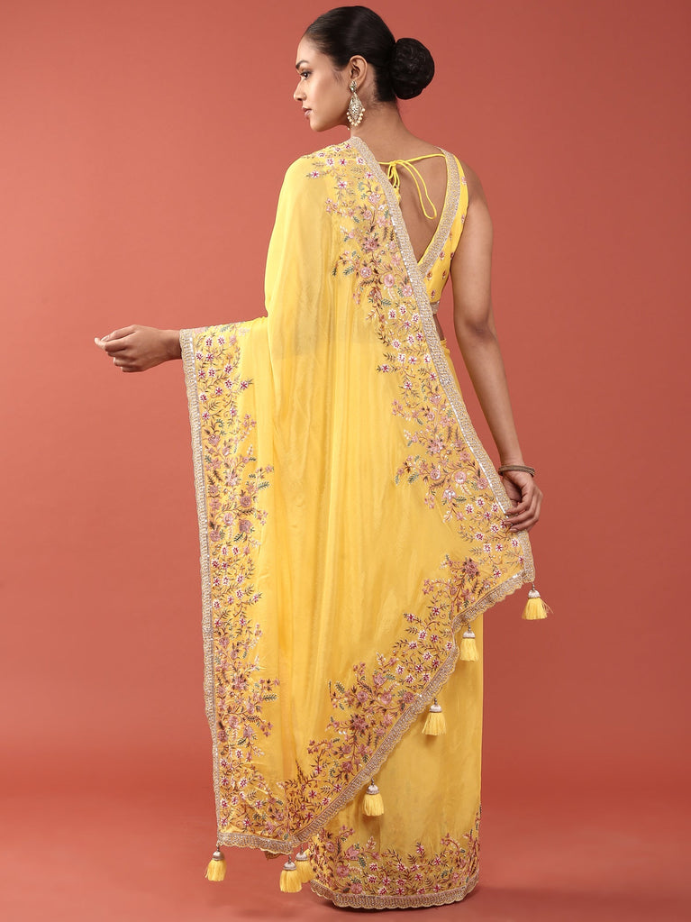 Lemon Crepe Sequins Saree With Readymade Blouse