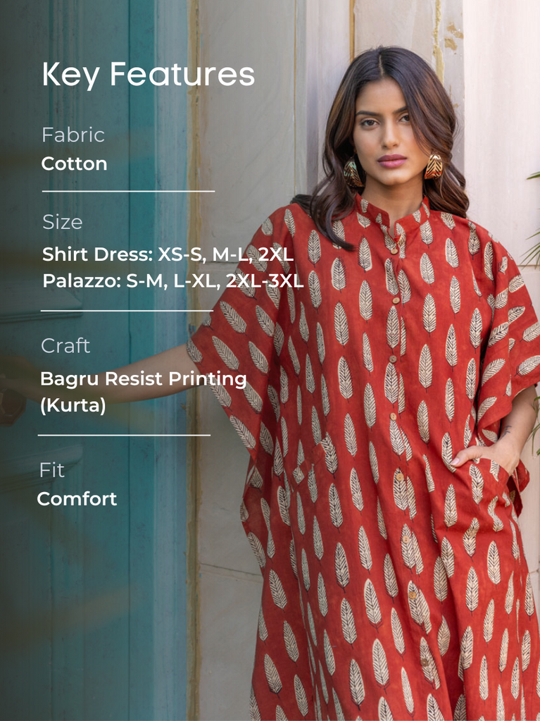 Set of 2 - Ananta Cotton Kaftan Shirt Dress and Palazzo