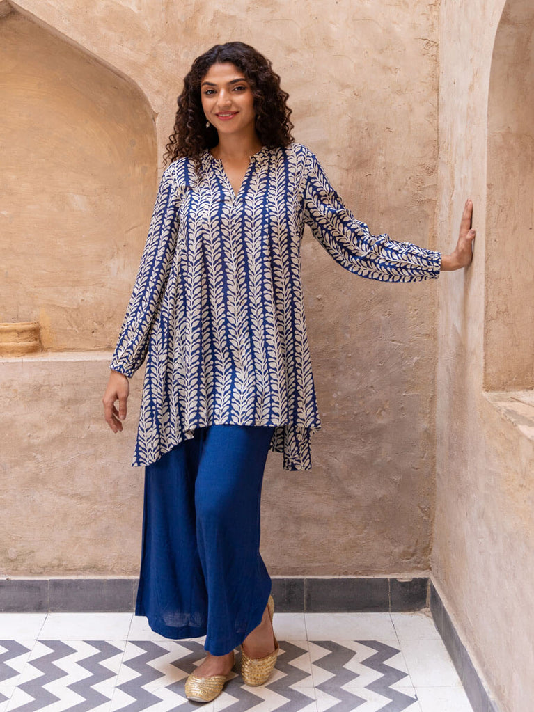 Set of 2 - Keya Indigo Cotton Tunic and Palazzo